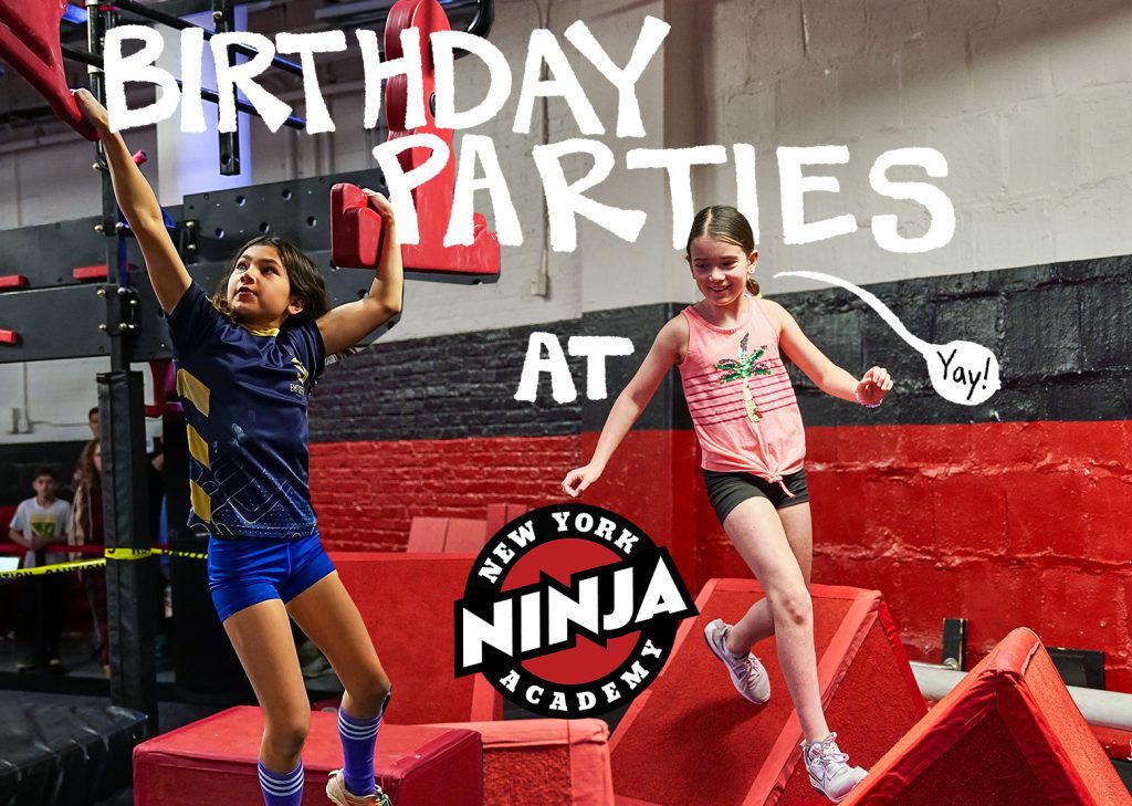 New York City Ninja Academy and Brooklyn Ninja Academy host exciting and memorable birthday events your child will never forget. Kids are challenged with fun and safe ninja warrior obstacle training with our professional coaching staff, some of whom are regulars on American Ninja Warrior! Kids run exciting obstacle courses complete with lights, sound effects, and the ultimate thrill of hitting the buzzer at the top of the Warped Wall!