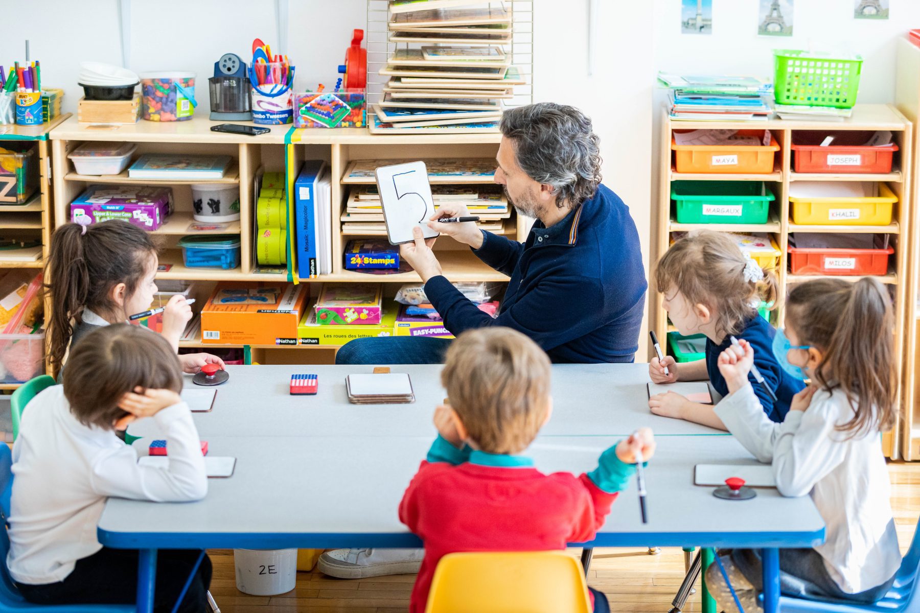 The École’s unique French-American program is open to children aged 2 and up. The Pre-Nursery class is the first year of The École’s pre-school Maternelle. The École’s approach to learning, combining the scholastic depth of the French system and play-based projects characteristic of American early childhood education, is carefully adapted to our Pre-Nursery students to ensure a nurturing classroom environment that eases the transition to school life for the children and their parents, all the while encouraging two-year-olds to develop their inquisitiveness and independence! In keeping with The École’s desire to remain human-sized, there is a cap of 12 students in the Pre-Nursery class. Two experienced and certified teachers—one native English speaker and one native French speaker—along with a dedicated daycare assistant create an atmosphere of discovery and delight for their Pre-Nursery students and prepare them for a bright future of bilingual learning at The École.