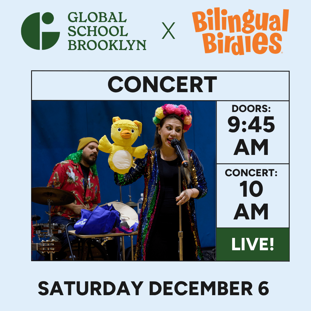 Get ready to jump, clap, and sing in this super fun bilingual performance at Global School Brooklyn. This family friendly concert with Bilingual Birdies will be an exciting way for kids to learn a bit of Spanish through music and movement. Don’t miss out, RSVP today!